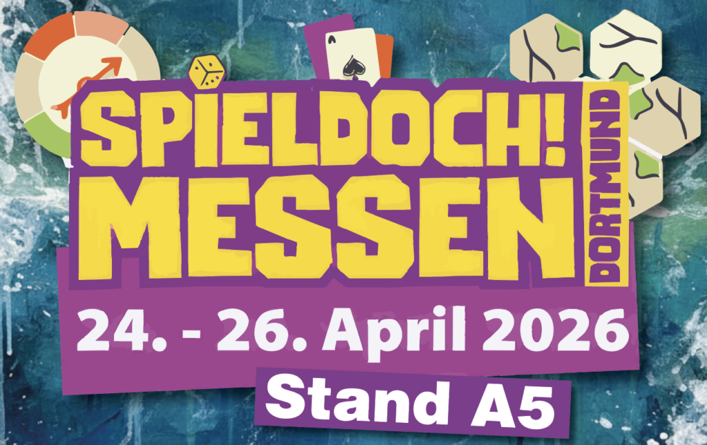 Vom 24. bis 26. April habt ihr die Chance, uns auf der „Spiel Doch!“ in Dortmund live zu erleben! Taucht ein in die Welt unseres Spiels, stellt all eure Fragen und werft einen exklusiven Blick hinter die Kulissen. Vor allem aber: Greift selbst zu den Würfeln und erlebt das Spiel hautnah – Spannung, Strategie und Spaß garantiert!
